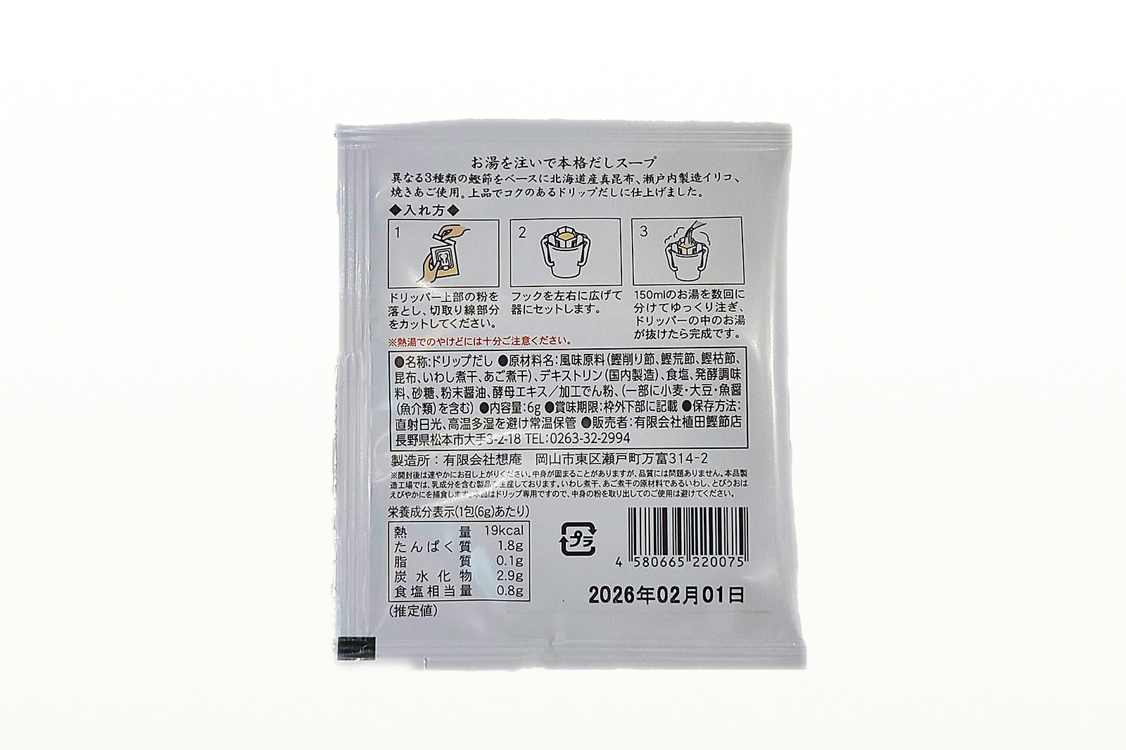 植田鰹節店オリジナルシリーズです。体が喜ぶ和風のお出汁。ドリップ式になっているから、マグカップで手軽にお出汁飲んでみませんか。朝のコーヒーのかわりに、ランチのお弁当のお供に。