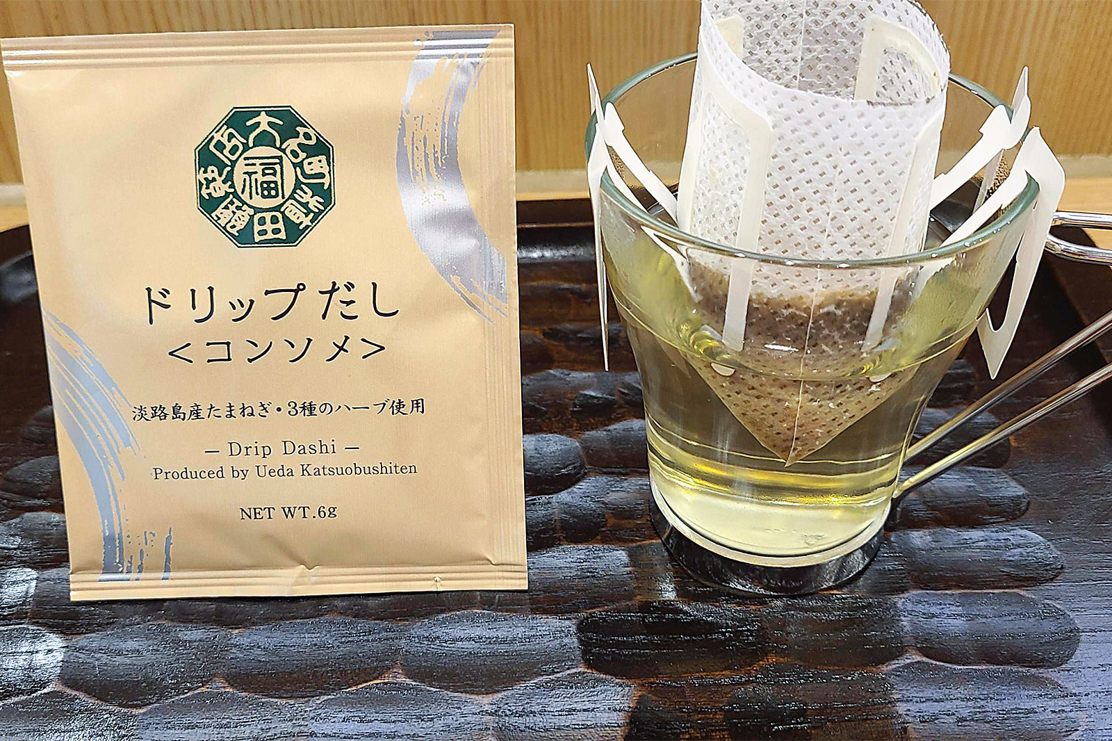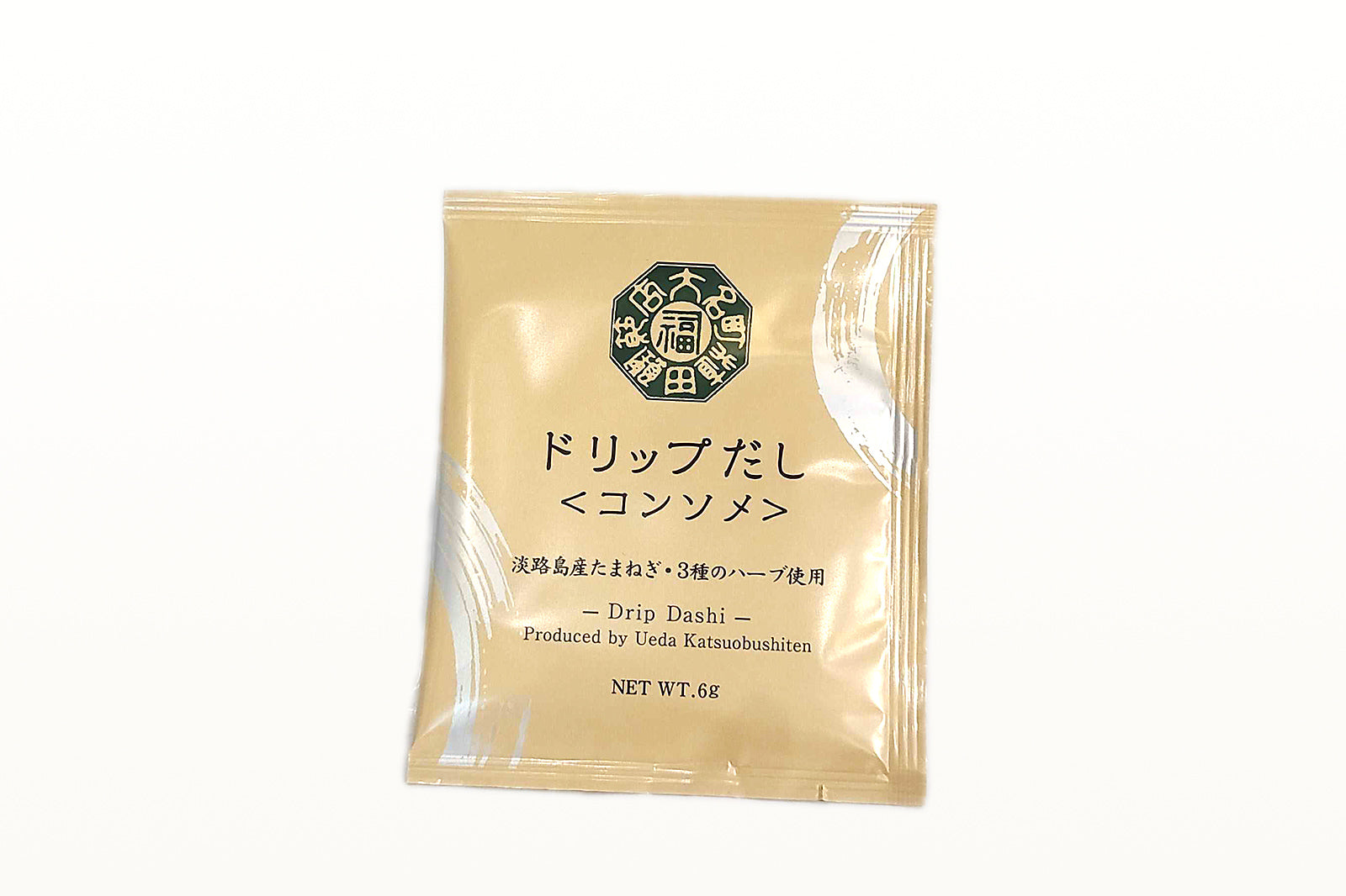 植田鰹節店オリジナルシリーズです。体が喜ぶコンソメお出汁。ドリップ式になっているから、マグカップで手軽にお出汁飲んでみませんか。朝のコーヒーの代わりに、ランチのお弁当のお供に。